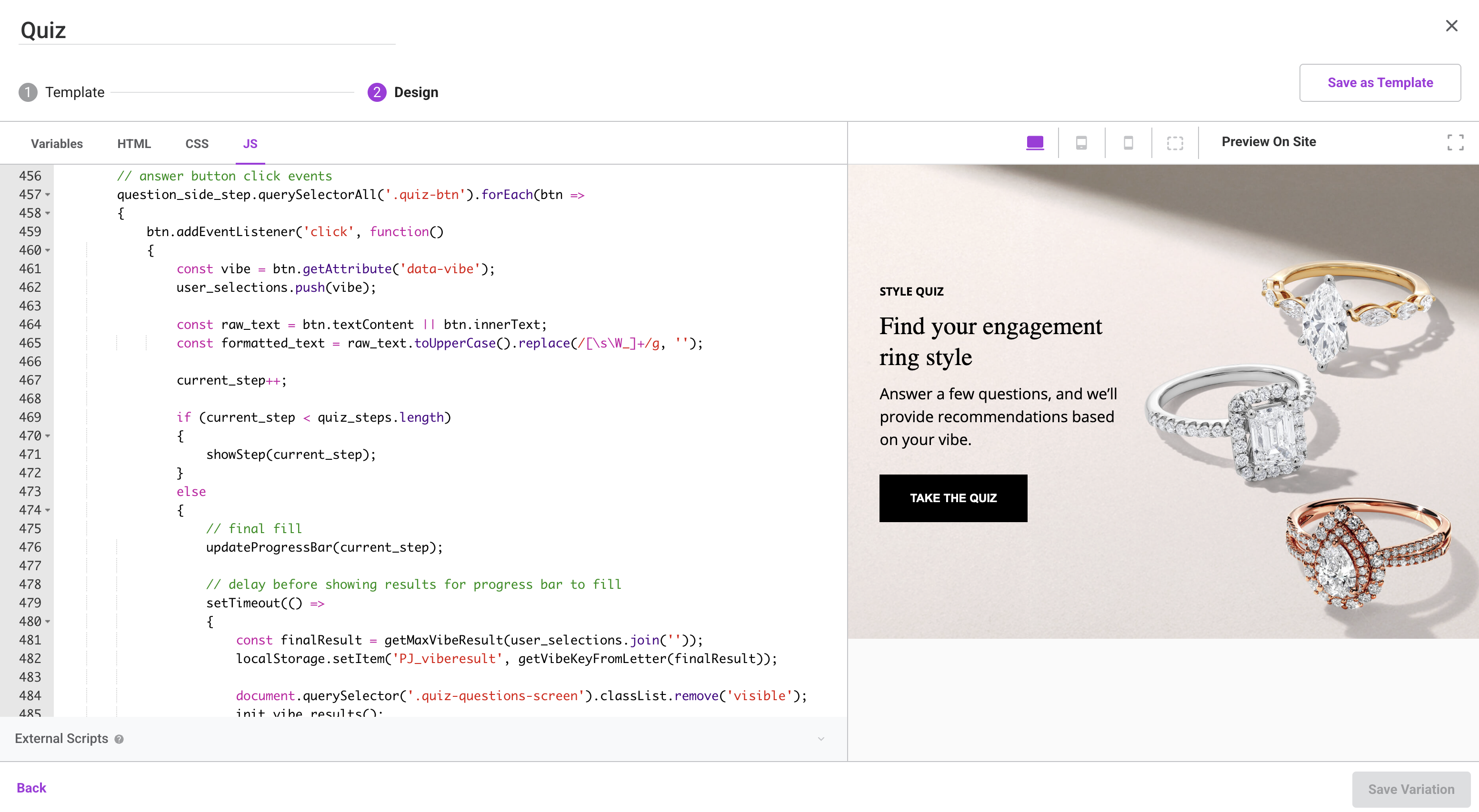If an optional, inline quiz was embedded directly within engagement ring PLPs, shoppers would complete the experience and engage more deeply with recommended products.